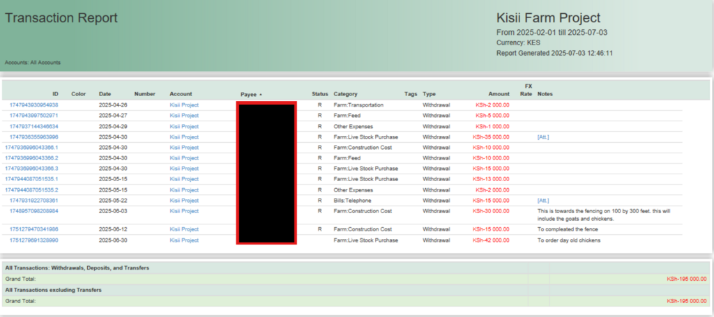 We met to nail down practical next steps for the Kisii farm. First, the poultry: we’ll build a dedicated coop for up to 300 birds, with a separate layers section so eggs can be collected without disturbing the flock. On fencing, we agreed on layout and are sourcing posts, wire, and gate hardware now. In parallel, we’ve started sowing our own feed crop; if germination stays on track, we should be off the feed-store bill by September 2025.