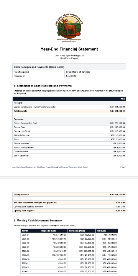 Governance Note: Impact-First Model Jam Raye Agro Holdings operates as a Social Enterprise. 100% of contributions are ring-fenced for direct farm infrastructure to fuel food security and generational change.
